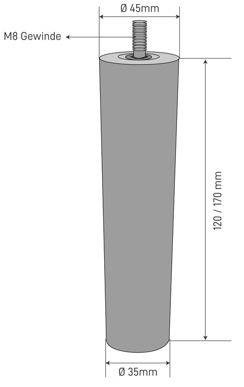 Los pies cónicos de madera (35 mm en 45 mm) se caracterizan por un estabilizador alto y, por lo tanto, también son adecuados para camas, sofá o armarios. Por elHilo M8 Para el montaje, el pie se ajusta a muchosMuebles de ikea,y con el M8 apropiado, opcionalmente disponiblePlaca de montaje También a sus otros muebles. Elplaneador de fieltro suministrado Asegúrese de una posición firme y hermosos suelos sensibles.