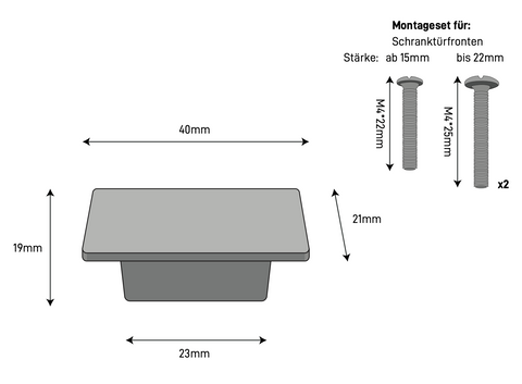 Tu proyecto de reciclaje alcanza un nuevo nivel. Con nuestro tirador para muebles RECHTECK puedes embellecer el frente de la cocina, el aparador o la puerta del armario, así como cajones y armarios: sencillos y elegantes, encajan en cualquier estilo y crean un acabado moderno en el diseño general. Nuestros tiradores para muebles son compatibles con todos los frentes de armario de 15 mm a 22 mm y también se pueden colocar fácilmente como colgadores de pared.