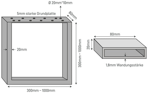 80mmx20mm Kastenprofil